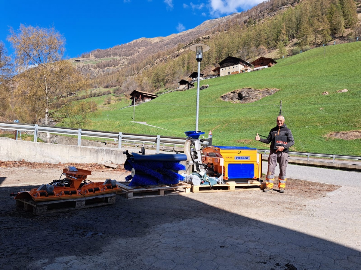Flachsilostreuaufbau FSS400/2 mit Kehrmaschine FIEDLER FKM 1210 und Schneepflug WIEDENMANN Snow Master Vario 3352